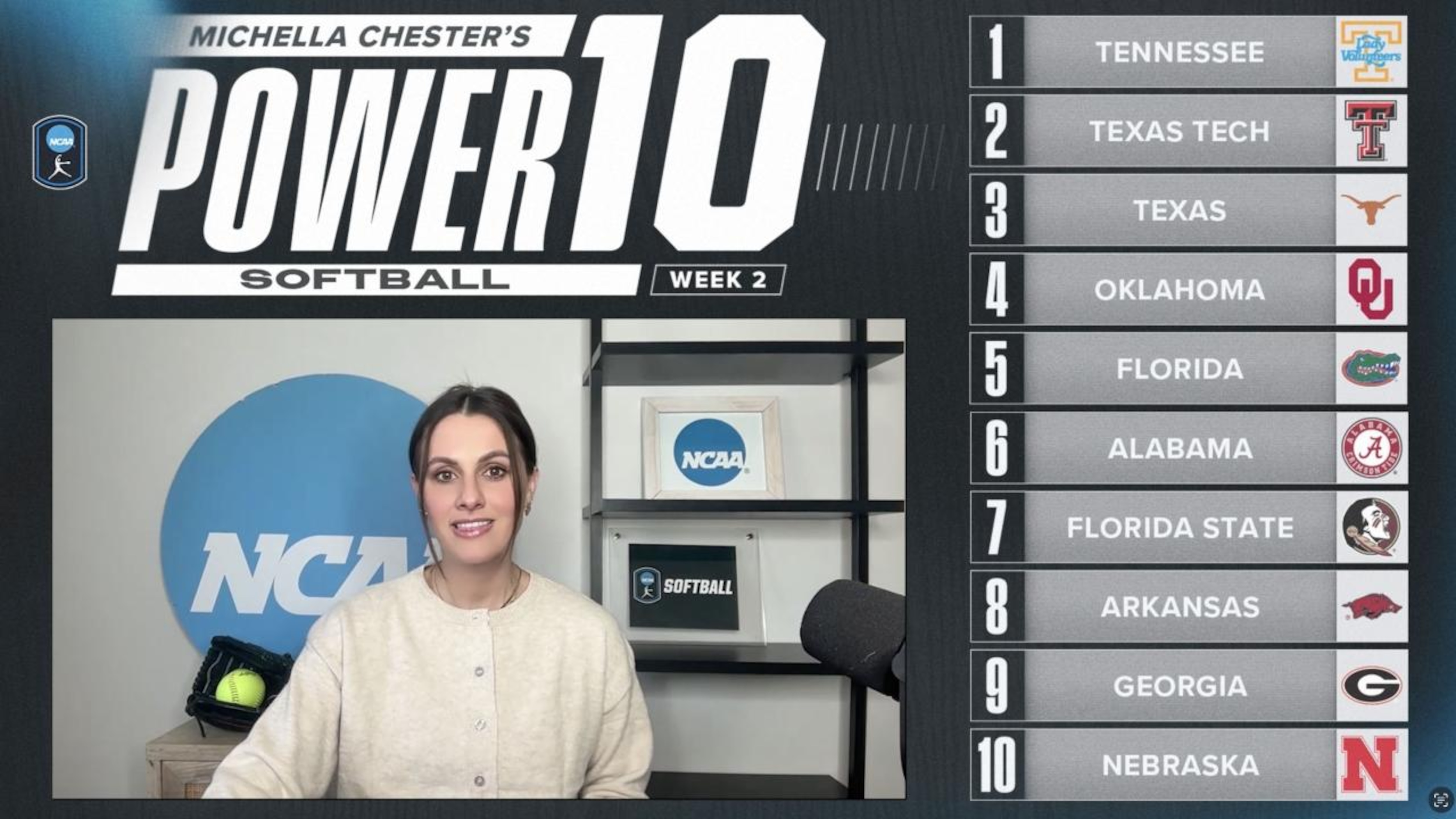Tennessee takes top spot in college softball Power 10 rankings