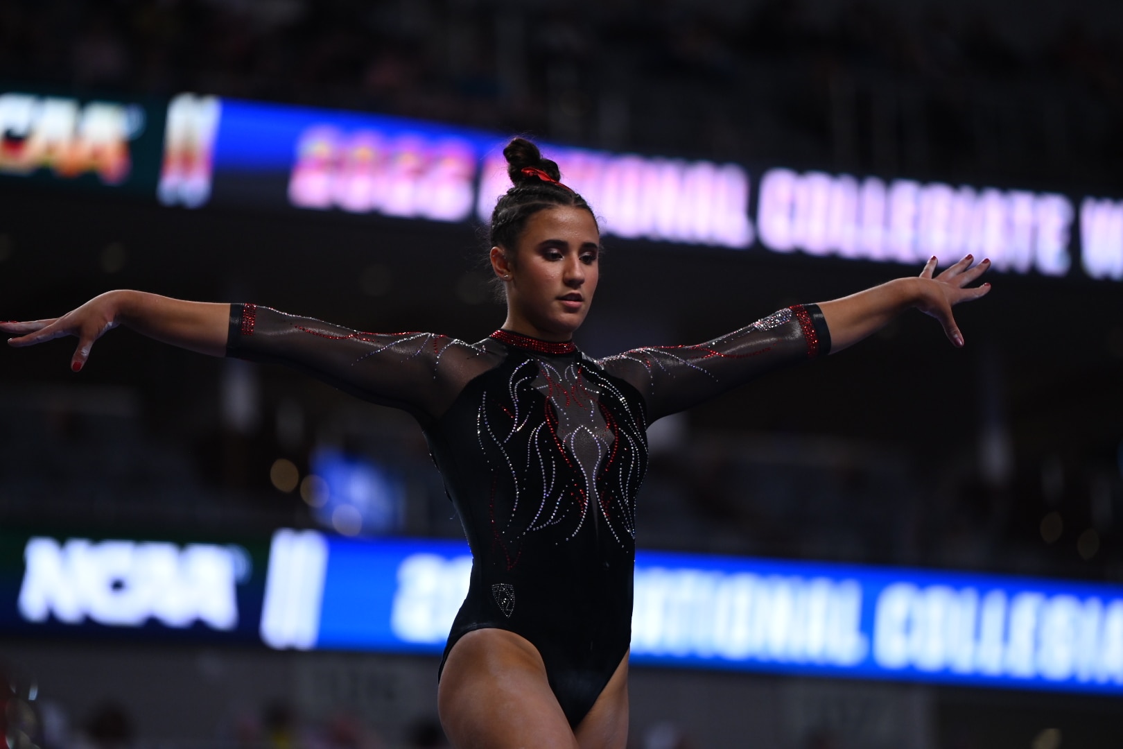 Auburn's Suni Lee won the national title on balance beam. Lee scored a 39.6750 on all four events and was a huge reason for Auburn's second place finish in semifinal II. She posted a 9.9625 on balance beam. Watch her performance here: