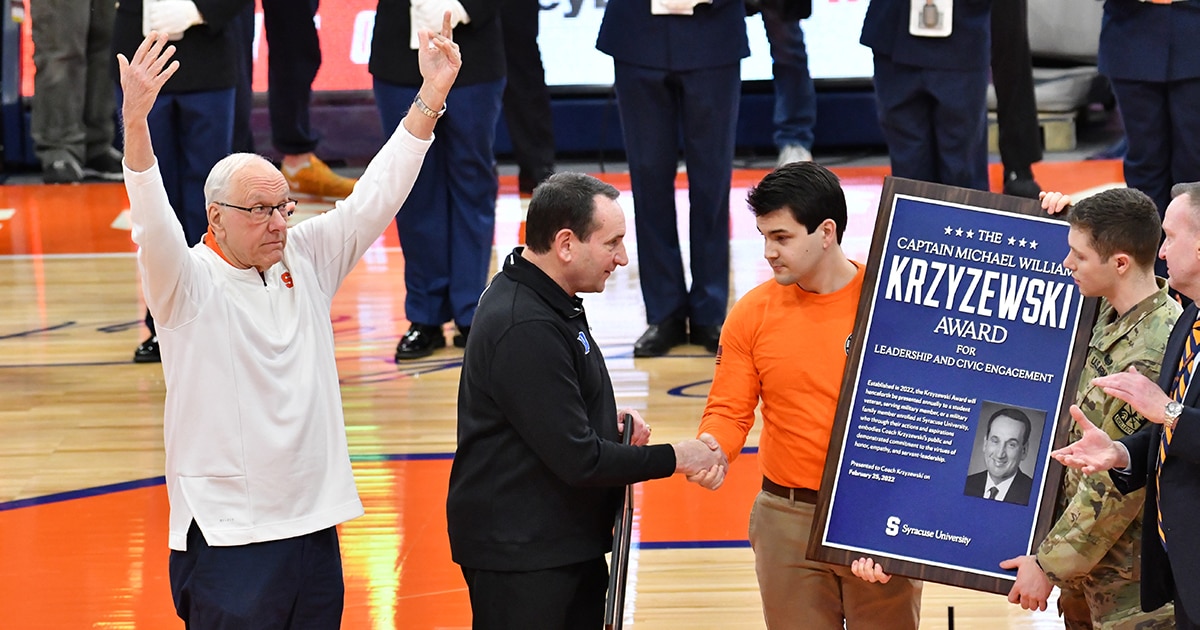 Duke coach Mike Krzyzewski was honored before Saturday's game at Syracuse, where his No. 7-ranked Blue Devils blitzed the Orange in Coach K's final trip to the Carrier Dome. Duke scored the game's first 14 points — four different Blue Devils scored before the first Orange player scored — and the Blue Devils' lead was never less than 12 after that, and it soon grew to 28 points. The Blue Devils led 51-34 at half, despite Duke missing three shots on the final possession of the half.