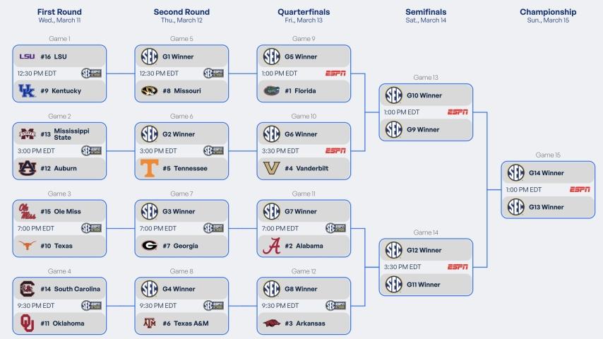 2026 SEC tournament: Bracket, schedule, scores for men's basketball