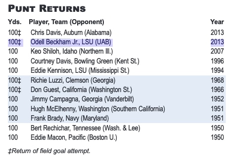 • 3rd in LSU history in career all-purpose yards per game: 137.2 yards per game