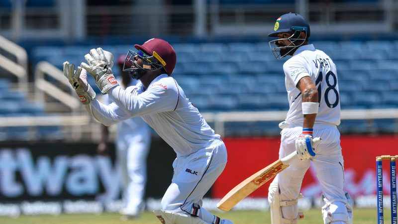 After taking a fine catch at first slip to send back KL Rahul, Cornwall had Cheteshwar Pujara edging to backward point. He went on to snaffle another catch at first slip to send back Mayank Agarwal, once again off Jason Holder. The off-spinner also notably troubled Virat Kohli with his high release point and sharp dip.