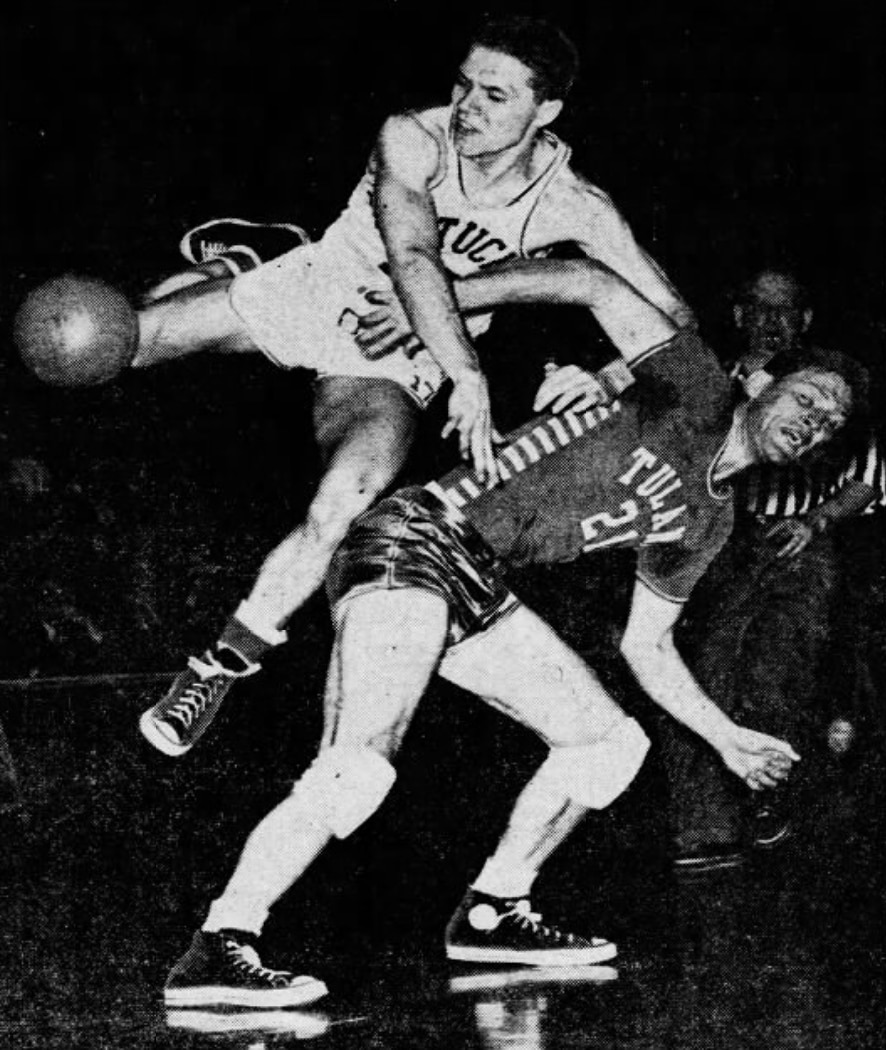 "A surprised capacity crowd of 7,450 persons never saw the Wildcats in the lead during the first 15 minutes of play," reported the AP. "They came to life with five minutes of the period remaining, however, take the lead at 19-18, and by the halftime intermission had increased their advantage too 30-22. Kentucky had increased its lead to 14 points, 44-30, after six minutes of the second half had gone, but at that point Tulane began to whittle Kentucky's lead."