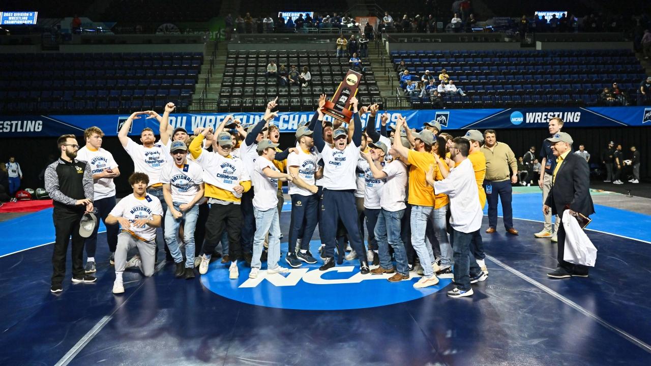 Nebraska-Kearney currently holds the DII wrestling championship title after its win in 2022. Before then, St. Cloud State had won three straight championships.