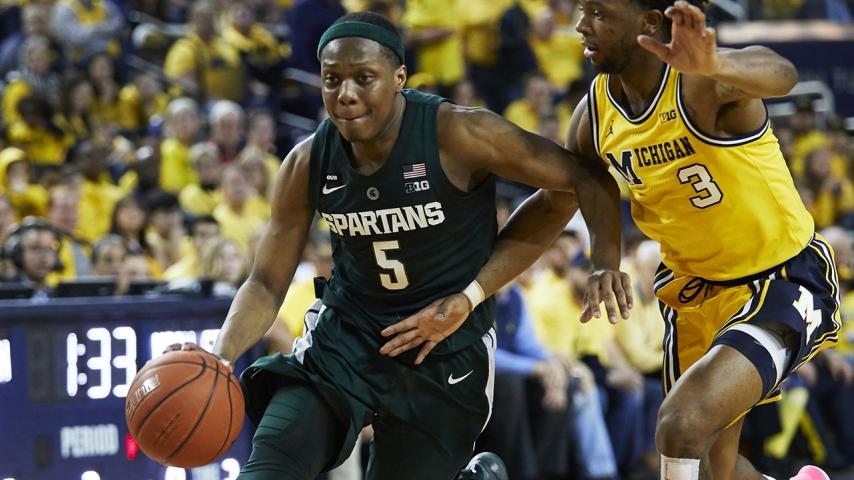 Down two starters on the road against your rival? Not a problem for Sparty!'s Cassius Winston connects with after knocking off No. 7 Michigan in their house!