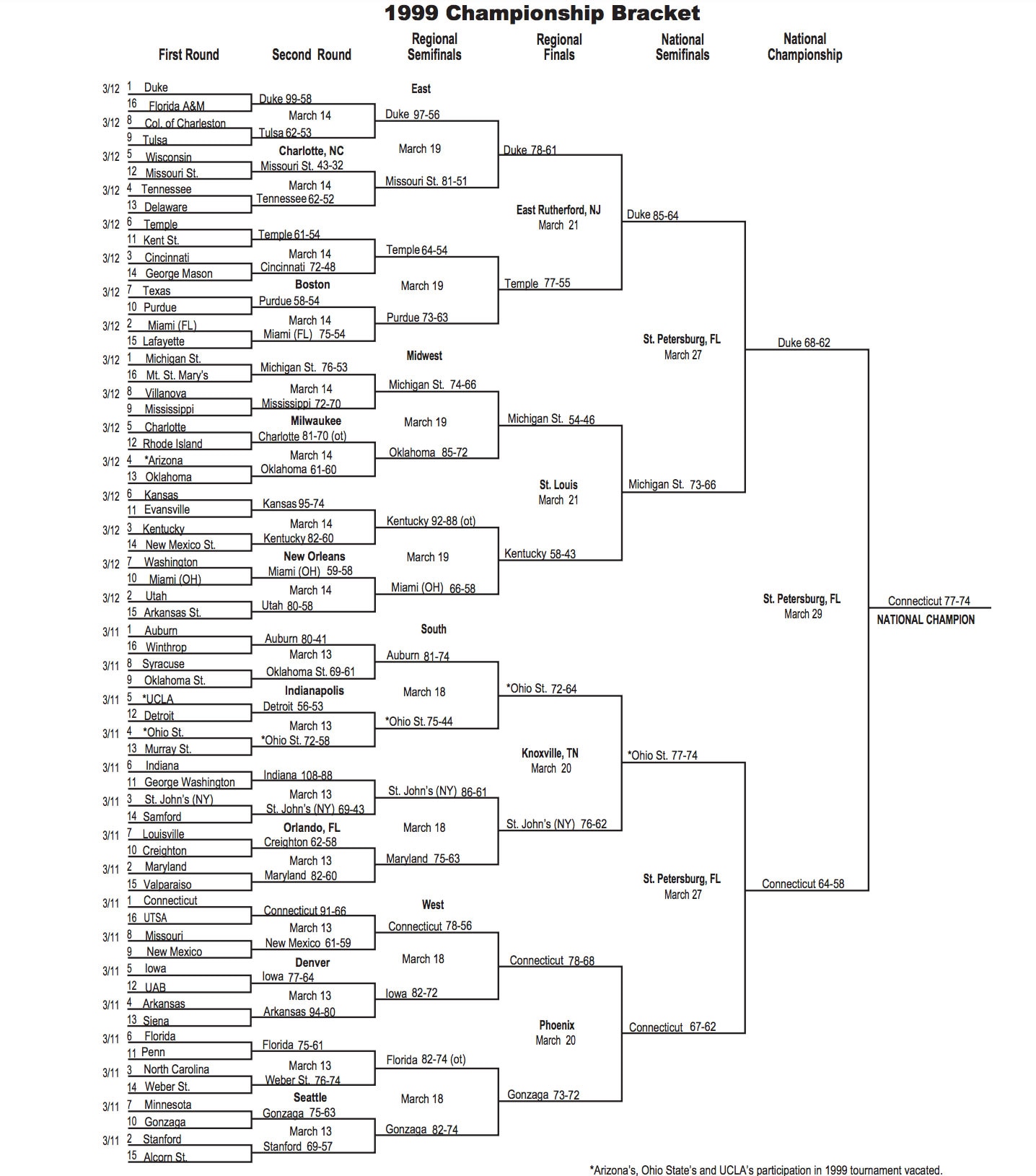 1999 NCAA tournament: Bracket, scores, stats, records