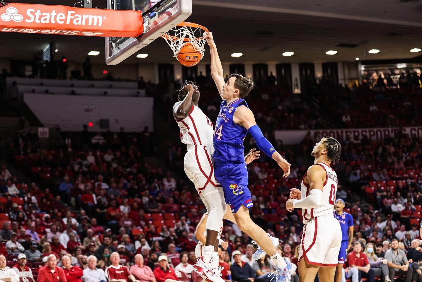 Meanwhile, Kansas battled Oklahoma down to the wire. The two were tied 62-62 with 30 seconds to go. Jayhawk Christian Braun's three-point shot broke the tie with 12 seconds to go and Kansas held on thanks to its free-throw shooting. The victory didn't come without a cost for Kansas; star guard Ochai Agbaji suffered an injury going for a loose ball late in the game.