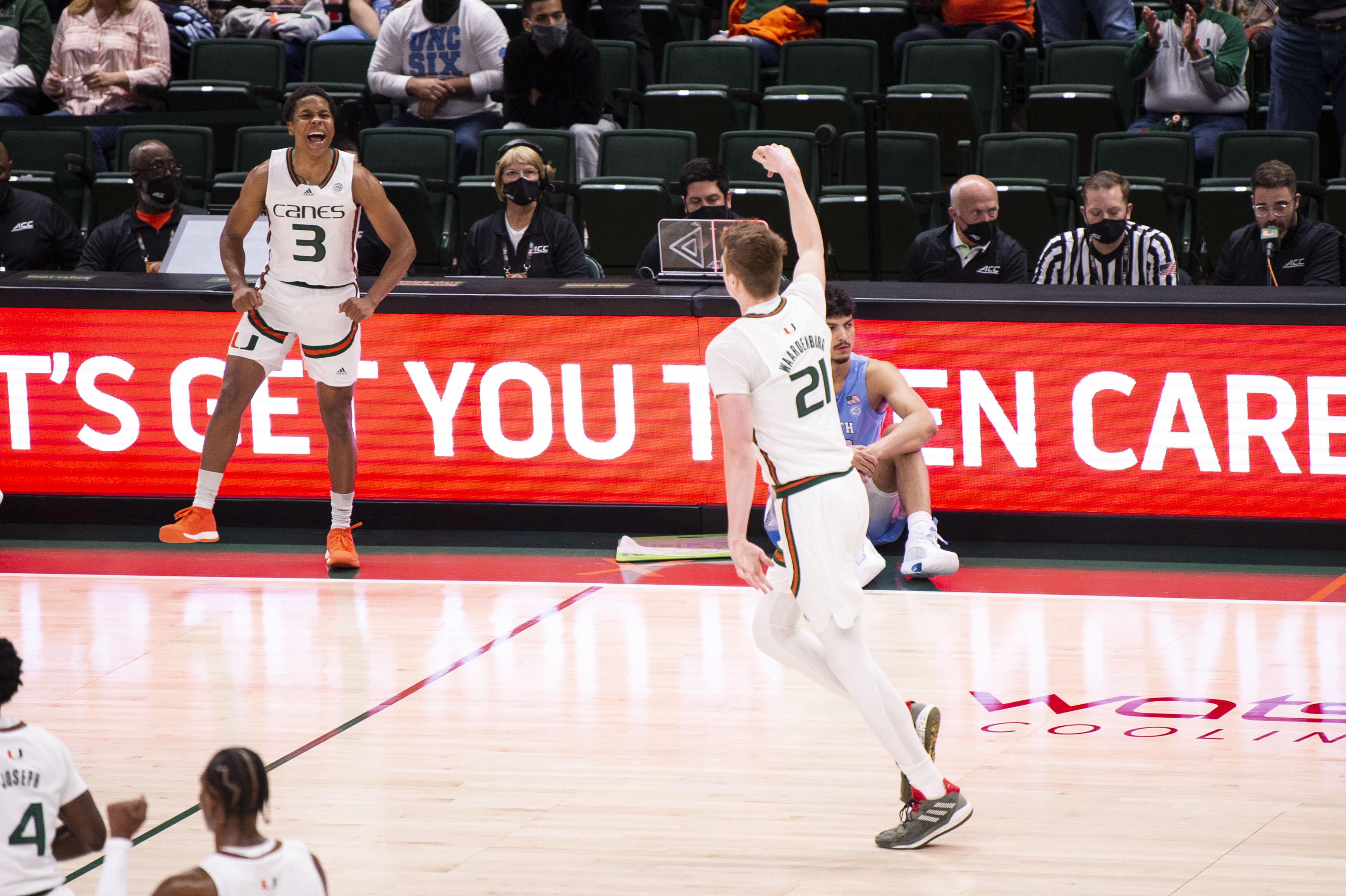 Earlier this season, Miami knocked off a ranked Duke team. Today, the Hurricanes beat the other team from Tobacco Road, North Carolina. Miami won by 28 points behind three scorers hitting the 20 point mark. Miami remains at the top of the ACC with just one conference loss.