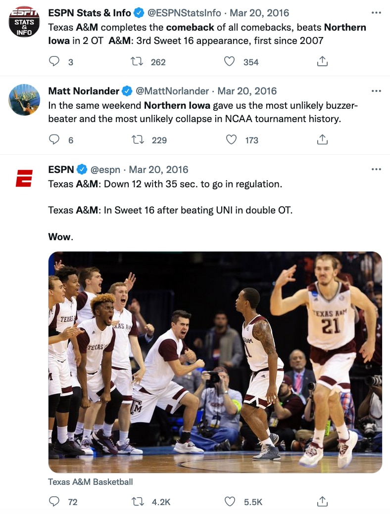 If we rewind the clock to March 20, 2016, what would your Twitter timeline have looked like if you were a college basketball fan?