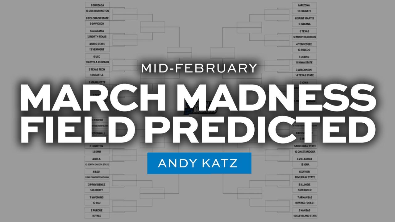 Here's how Katz projects the 68-team field to look, through Monday, Feb. 14.