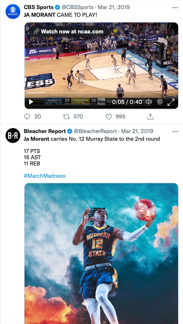 This was not the "where did this kid come from?" March Madness story authored by Steph Curry and Davidson in 2008. Because of social media, a majority of college basketball fans already knew of Morant, and a good portion of them knew he was really good and really fun. Now to be fair, had Twitter and Instagram been around in 2008, Curry would have been in that same realm.