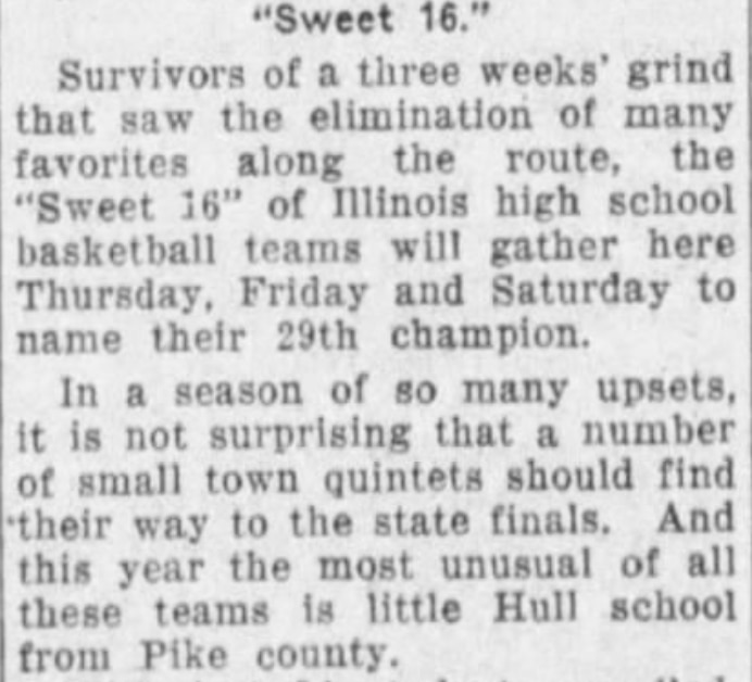 Below is an excerpt from The Davenport Democrat and Leader (Davenport, Iowa) from March 1936, describing a high school basketball tournament, so the phrase has long been associated with postseason, single-elimination basketball tournaments.