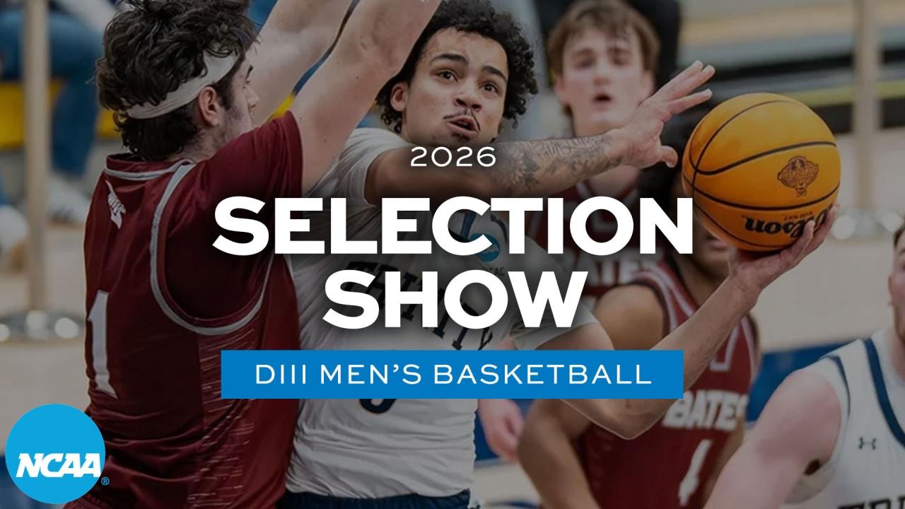 The 2026 NCAA DIII men's basketball championship began with a selection show on Monday, March 2 on krikyu.com. The 64-team field consists of 43 automatic qualifiers and 21 at-large bids.