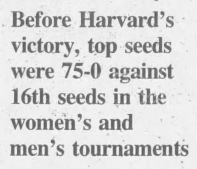 The record book shows that Harvard shocked the basketball world that day. The 71-67 victory over Stanford was the first time a No. 16 seed had ever beaten a No. 1 seed in either the women’s or men’s tournament. More than two decades later, only the UMBC men of 2018 have matched the feat when they stunned Virginia. That makes the current overall all-gender record of No. 1s in the matchup 250-2 (through the 2021 tournaments). Those were the enormously long odds the Crimson women overturned that day.