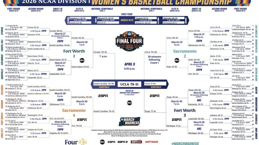 2026 March Madness: Women's NCAA tournament schedule, dates, times