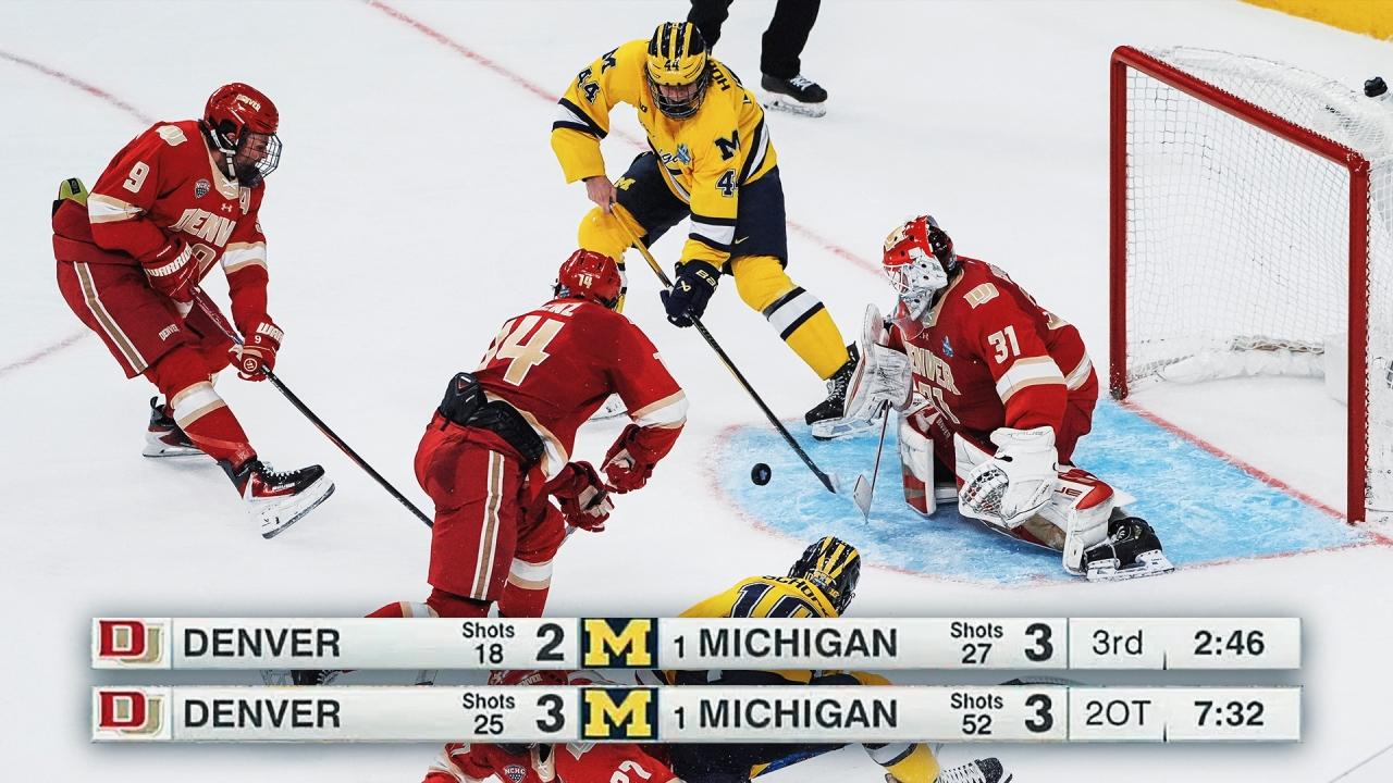 | Bowling Green, Maine, Denver, Michigan, Michigan St., North Dakota, Colorado College, Wisconsin | 2 |