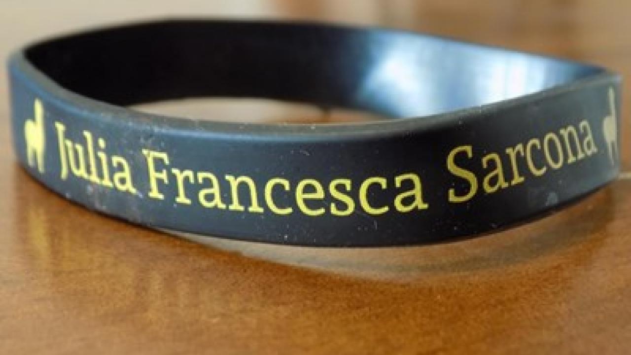 The commemorative wristband the Gators are wearing in honor of Julia Sarcona.