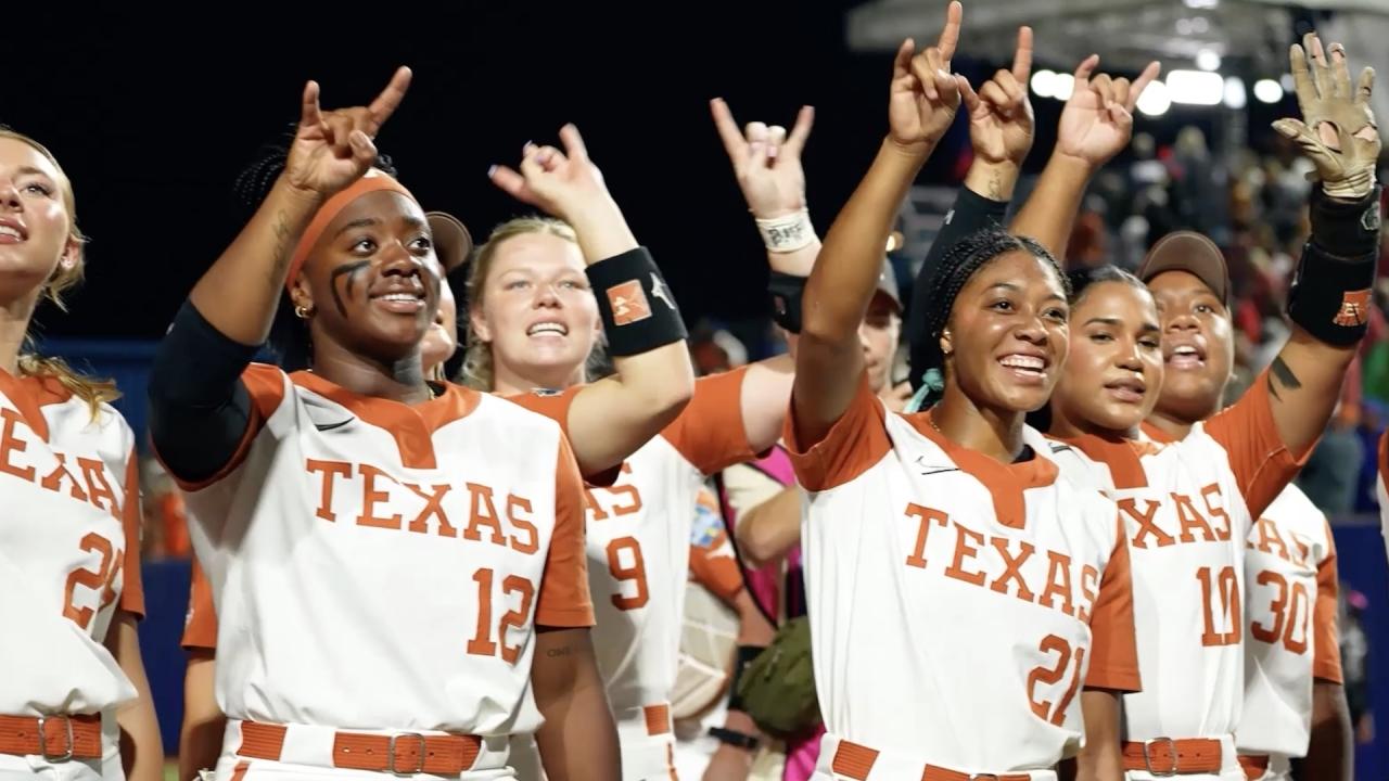 The two were tied 6-6 after 7, sending the game into extras before Katie Stewart delivered a walk-off bomb in the bottom of the eighth to give the Longhorns the 8-6 hard-fought victory.