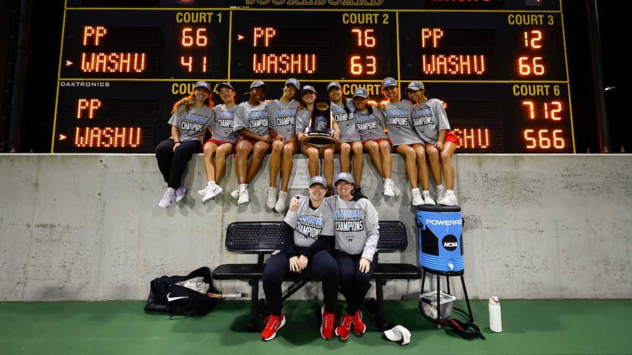WashU won the 2025 DIII women's tennis team national title, defeating Pomona-Pitzer, 4-3. Junior Nina Moravek defeated sophomore Leticia Bazua Vazquez to cement the victory β€” the program's first-ever national championship.